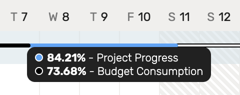 In a glance you can see the project status versus the consumption of the budget, basically how the project is actually going and if you’re on top of it.