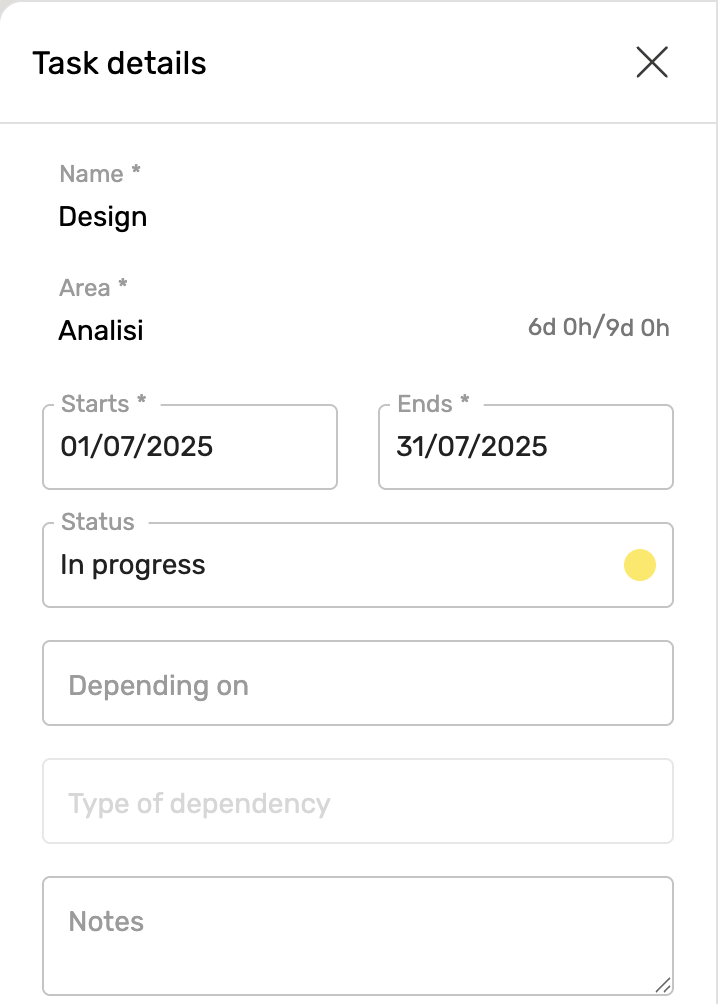 - Status: colors tasks and subtasks based on their current status (Not Started, In Progress, Blocked, Completed, Closed). 💡 This allows you to quickly spot progress and issues — supporting faster, data-driven decisions.