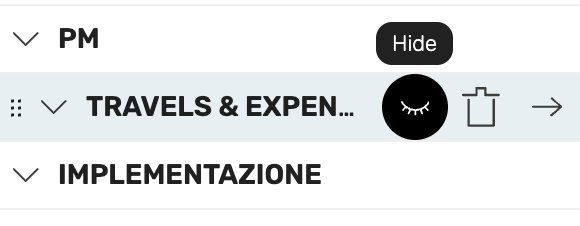 By hovering on a task or area, you will see the “eye” icon which allows to hide such tasks or area which usually do not need to be assigned or planned.